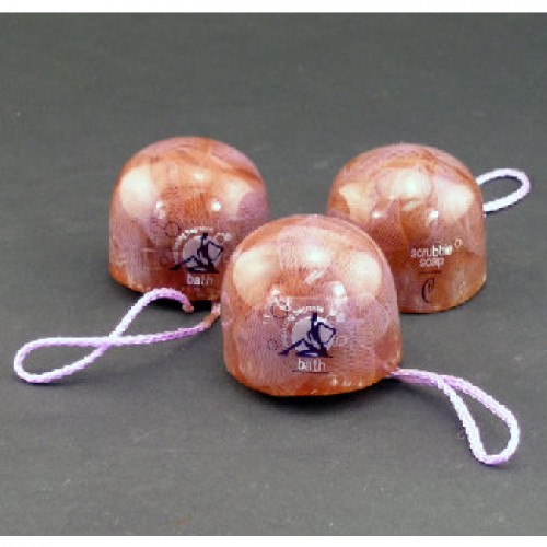 This is a rope soap with a pleasant surprise inside! Each one contains a compressed bath puff (netting sponge) to gently exfoliate the skin while you use the soap. The more you use the Scrubble soap, the more the loofah expands. Keep it after the soap in gone for continued use in your bath. Now for another pleasant surprise.... when you order this item from us at Soap-On-A-Rope.com, you will receive 3 complete Scrubbles for one low price! Note: Colors may vary.