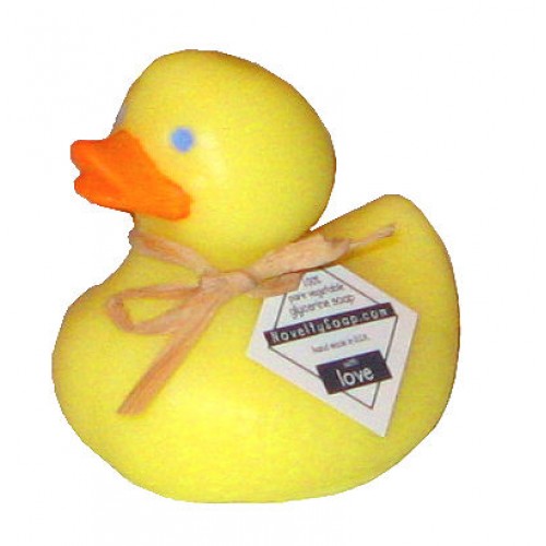 This cute all-natural 3D duck is irresistable to even the most reluctant young bather and is as gentle as baby soap although it is not 'tears-free'! The soapcrafters at Novelty Soapworks use 100% shea butter & silk vegan based glycerin soapbase and a light, fresh baby powder fragrance. At 7 ounces (210 grams)it is larger than it looks and should last for many delightful baths! Each soap is handmade and cleverly detailed and designed to make bathtime fun and playful for kids of all ages! We believe it is the best 'rubber-ducky' style soap found anywhere in the world. Made in the U.S.A. by Novelty Soapworks! Net Wt: 7 oz.