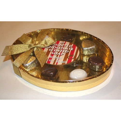 If Forrest Gump ever received this marvelous gift, he'd probably say, "Soap is like a box of chocolates!" This amazingly 'life like' gift box is filled with ten deliciously scented chocolate soaps. It makes a great gift for anyone who loves chocolate but hates calories! It even comes with a lovely bow. Caution:Not edible. Use only in the bath!